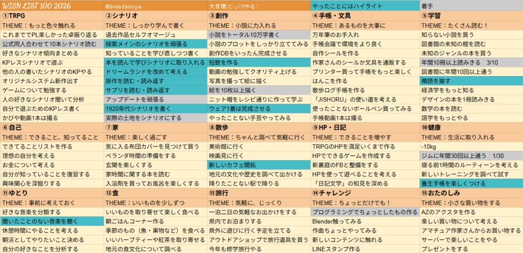 というわけで鬱ではあったものの大分気に病まずに過ごせた。目標として掲げてあったから気に病みかけても「いや、気に病まないって決めたしな」と思えたのもよかった。
