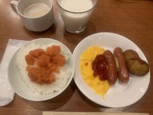 隣の席の家族連れの、男児が、上手に自分の食事を選んで上手にバランス良く食べているのを、感心しながら横目に、ガッとバランス悪く食べ終わり、部屋に戻り、チェックアウトしたら7時。